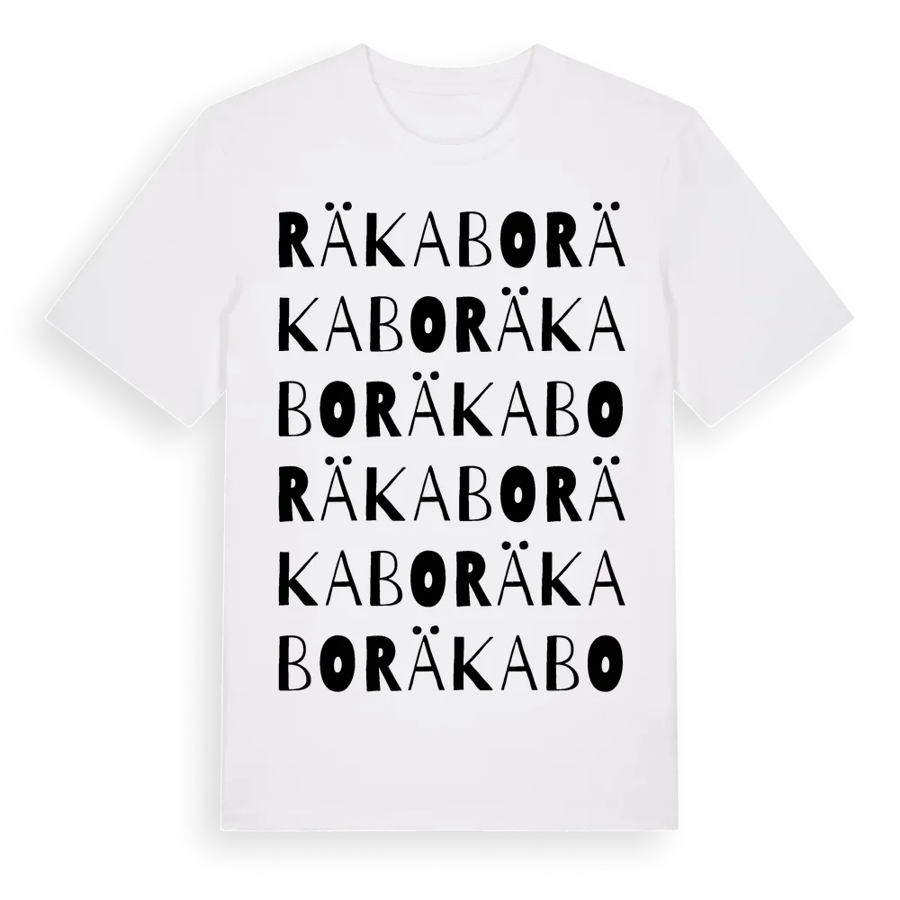 Räkabo ordlek t-shirt är inspirerad av Räkabo i Gävleborgs län, Sverige. Tröjan är designad för dig som har en speciell koppling till platsen – oavsett om du bor här, har rötterna här eller bara älskar Räkabo.