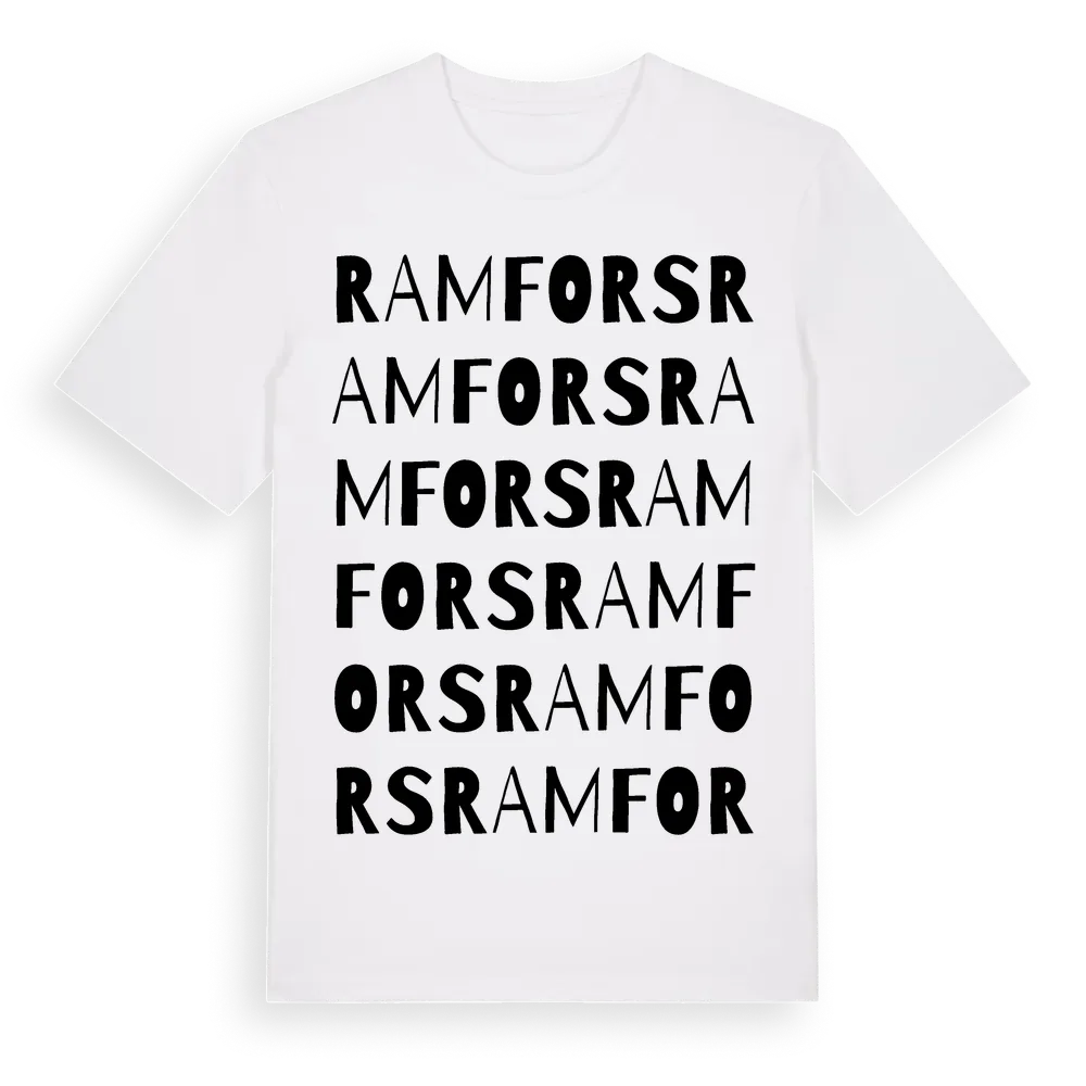 Ramfors ordlek t-shirt är inspirerad av byn Ramfors i Gävleborgs län, Sverige. Tröjan är designad för dig som har en speciell koppling till platsen – oavsett om du bor här, har rötterna här eller bara älskar Ramfors.