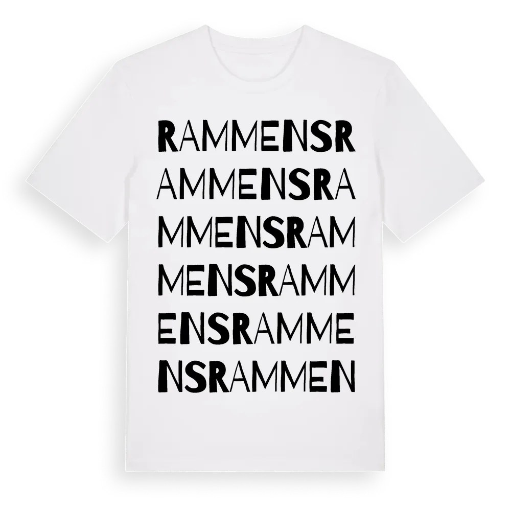 En ordlek byggd på Rammenss namn. Subtilt och klurig – ett motiv som bara de som verkligen känner platsen fullt ut förstår. Premium bomull, unisex – från Rammens i Gävleborgs län.