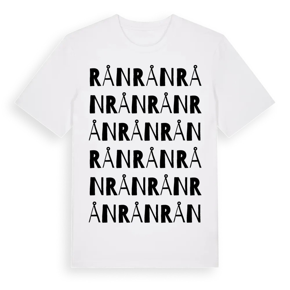 Rån ordlek t-shirt är inspirerad av byn Rån i Gävleborgs län, Sverige. Tröjan är designad för dig som har en speciell koppling till platsen – oavsett om du bor här, har rötterna här eller bara älskar Rån.