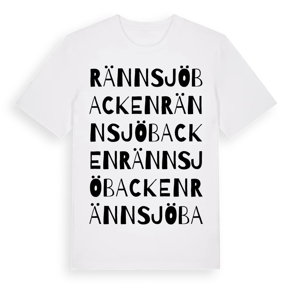 Rännsjöbacken ordlek t-shirt är inspirerad av Rännsjöbacken i Gävleborgs län, Sverige. Tröjan är designad för dig som har en speciell koppling till platsen – oavsett om du bor här, har rötterna här eller bara älskar Rännsjöbacken.
