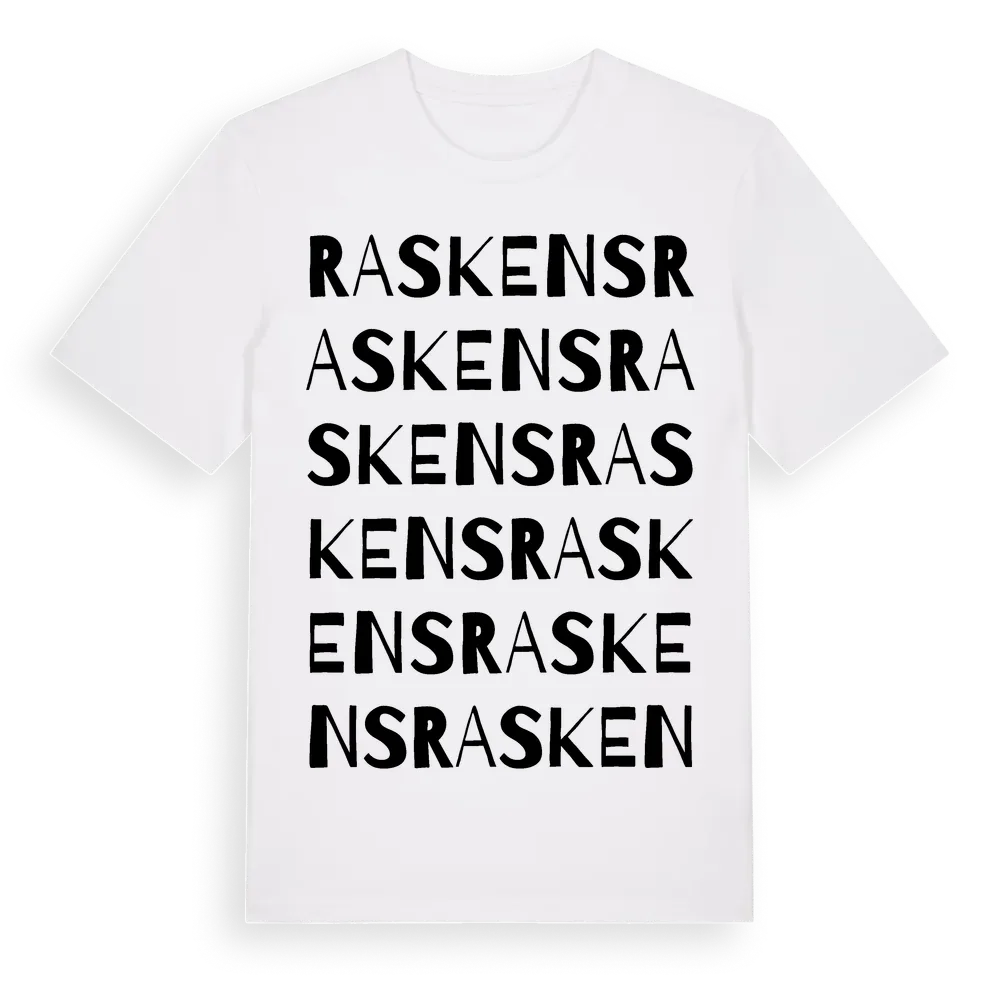 Raskens ordlek t-shirt är inspirerad av Raskens i Gävleborgs län, Sverige. Tröjan är designad för dig som har en speciell koppling till platsen – oavsett om du bor här, har rötterna här eller bara älskar Raskens.
