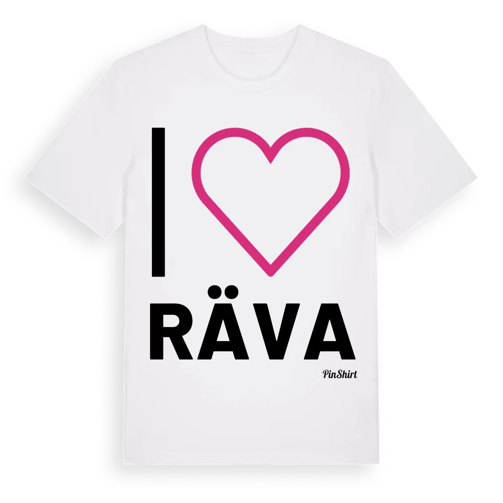 Det klassiska "I ❤ Räva"-motivet i stort format som täcker hela bröstet. För dig som vill visa kärleken till Räva på riktigt. Premium bomull, unisex – från Räva i Gävleborgs län.