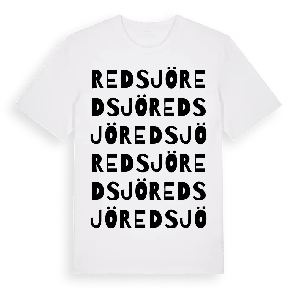 Redsjö ordlek t-shirt är inspirerad av byn Redsjö i Gävleborgs län, Sverige. Tröjan är designad för dig som har en speciell koppling till platsen – oavsett om du bor här, har rötterna här eller bara älskar Redsjö.