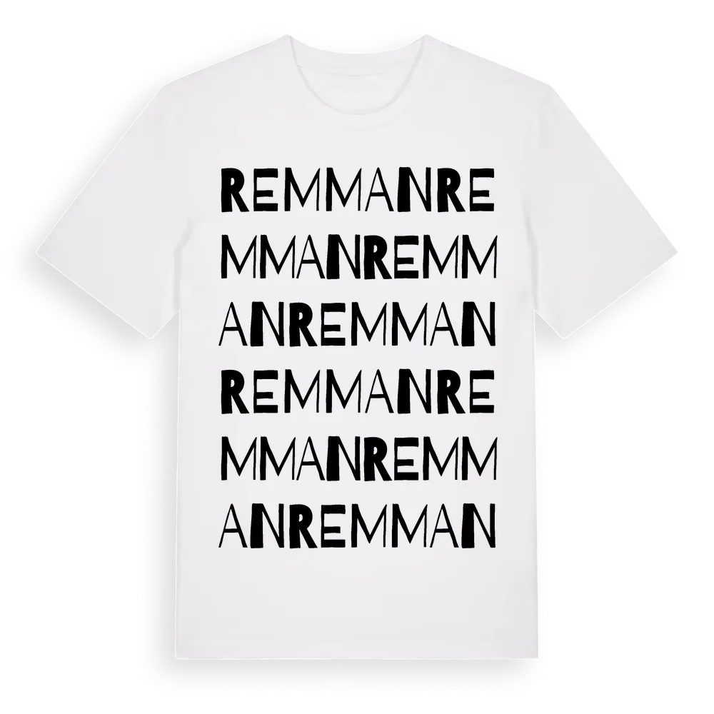 Remman ordlek t-shirt är inspirerad av Remman i Gävleborgs län, Sverige. Tröjan är designad för dig som har en speciell koppling till platsen – oavsett om du bor här, har rötterna här eller bara älskar Remman.