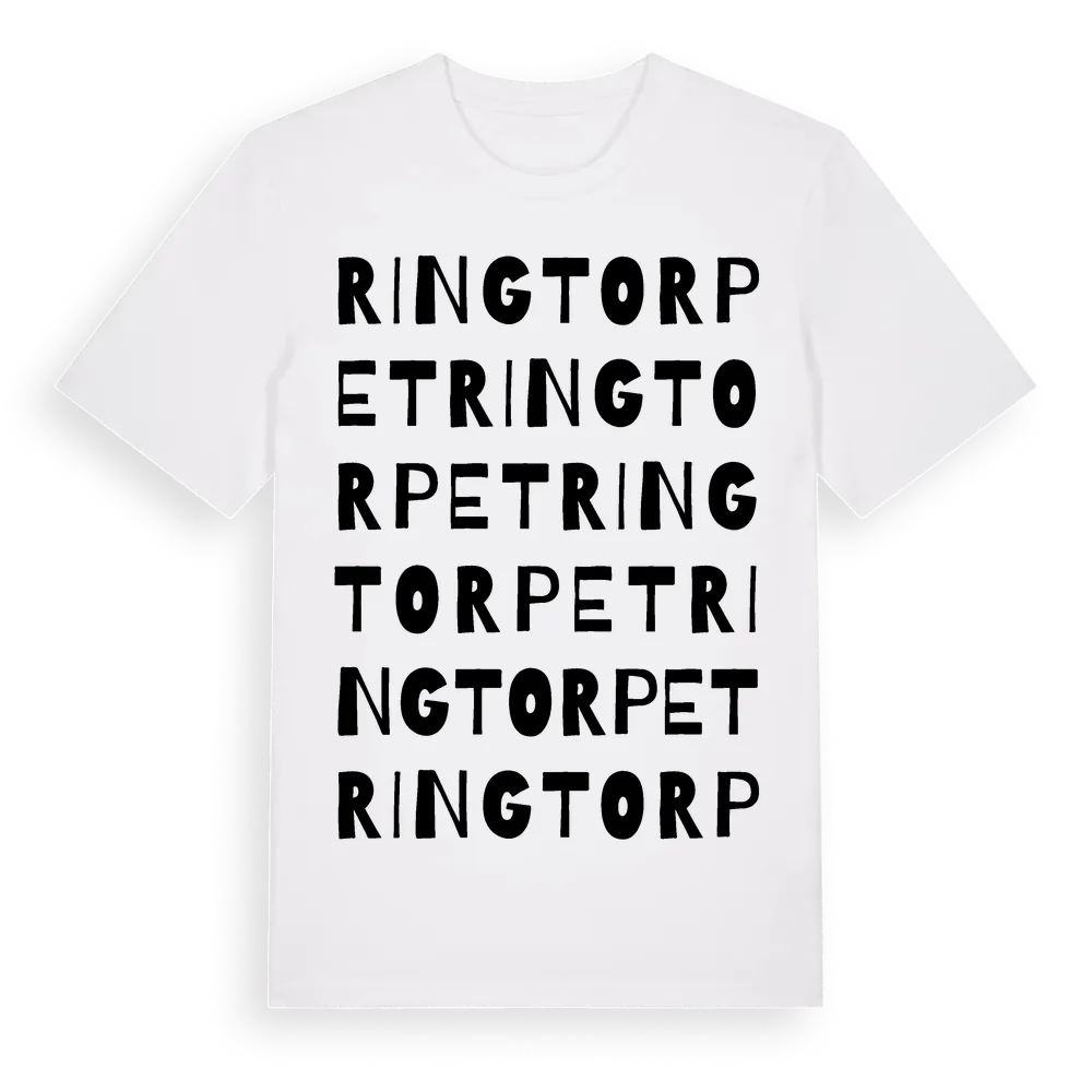 Ringtorpet ordlek t-shirt är inspirerad av Ringtorpet i Gävleborgs län, Sverige. Tröjan är designad för dig som har en speciell koppling till platsen – oavsett om du bor här, har rötterna här eller bara älskar Ringtorpet.