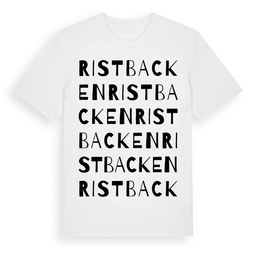 En ordlek byggd på Ristbackens namn. Subtilt och klurig – ett motiv som bara de som verkligen känner platsen fullt ut förstår. Premium bomull, unisex – från Ristbacken i Gävleborgs län.