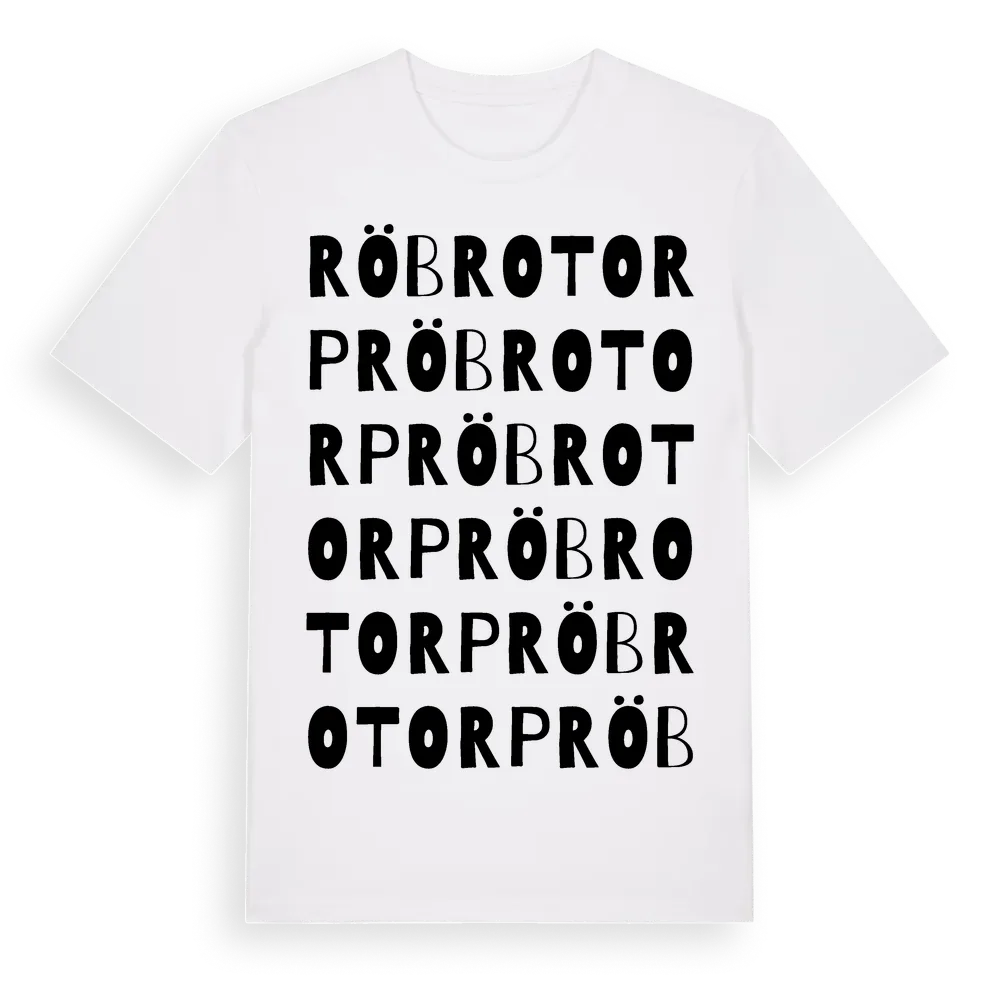 Röbrotorp ordlek t-shirt är inspirerad av Röbrotorp i Gävleborgs län, Sverige. Tröjan är designad för dig som har en speciell koppling till platsen – oavsett om du bor här, har rötterna här eller bara älskar Röbrotorp.