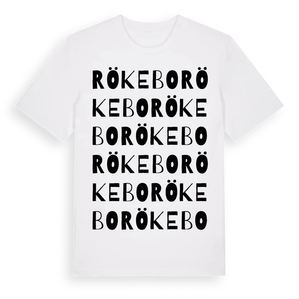 Rökebo ordlek t-shirt är inspirerad av stadsdelen Rökebo i Gävleborgs län, Sverige. Tröjan är designad för dig som har en speciell koppling till platsen – oavsett om du bor här, har rötterna här eller bara älskar Rökebo.