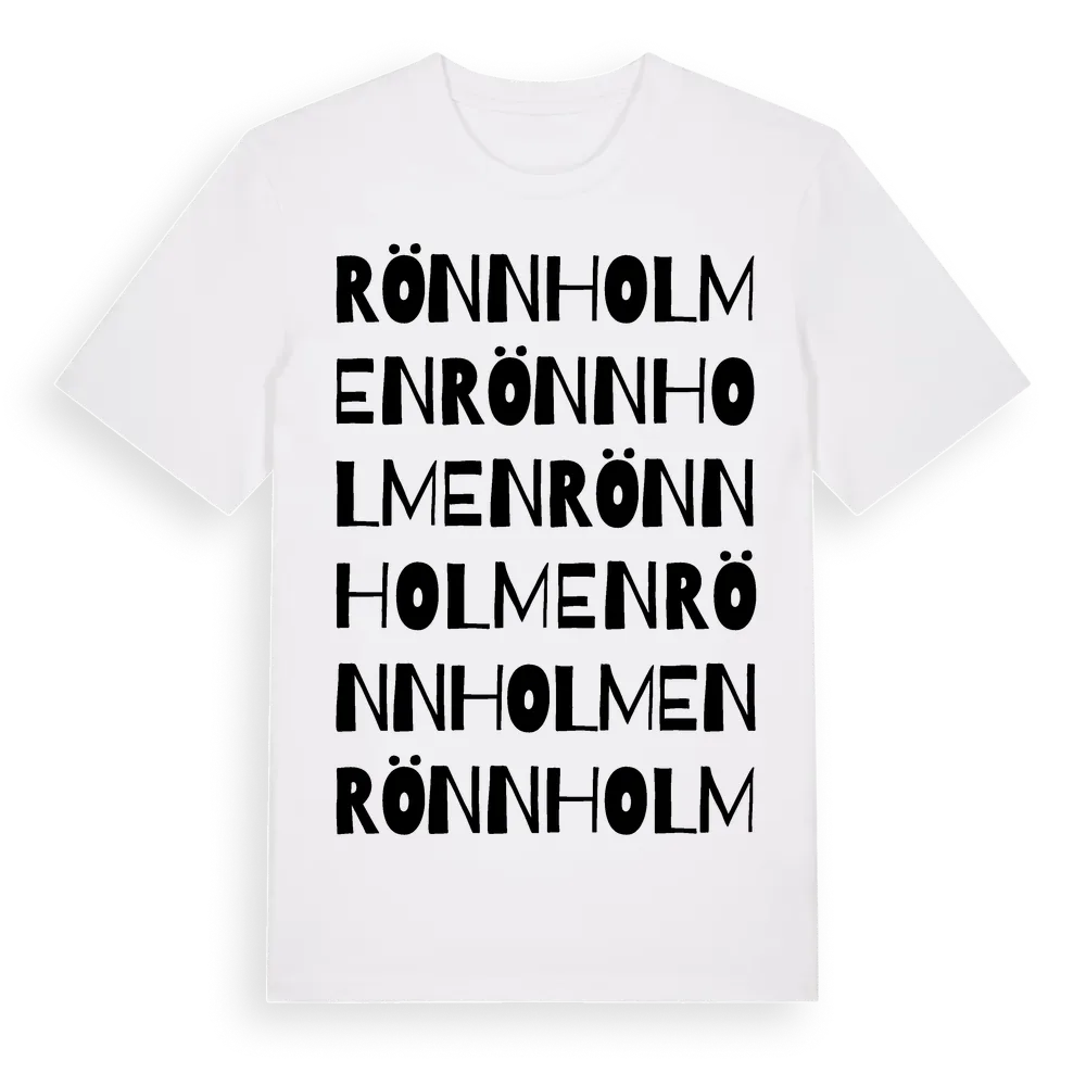 Rönnholmen ordlek t-shirt är inspirerad av Rönnholmen i Gävleborgs län, Sverige. Tröjan är designad för dig som har en speciell koppling till platsen – oavsett om du bor här, har rötterna här eller bara älskar Rönnholmen.