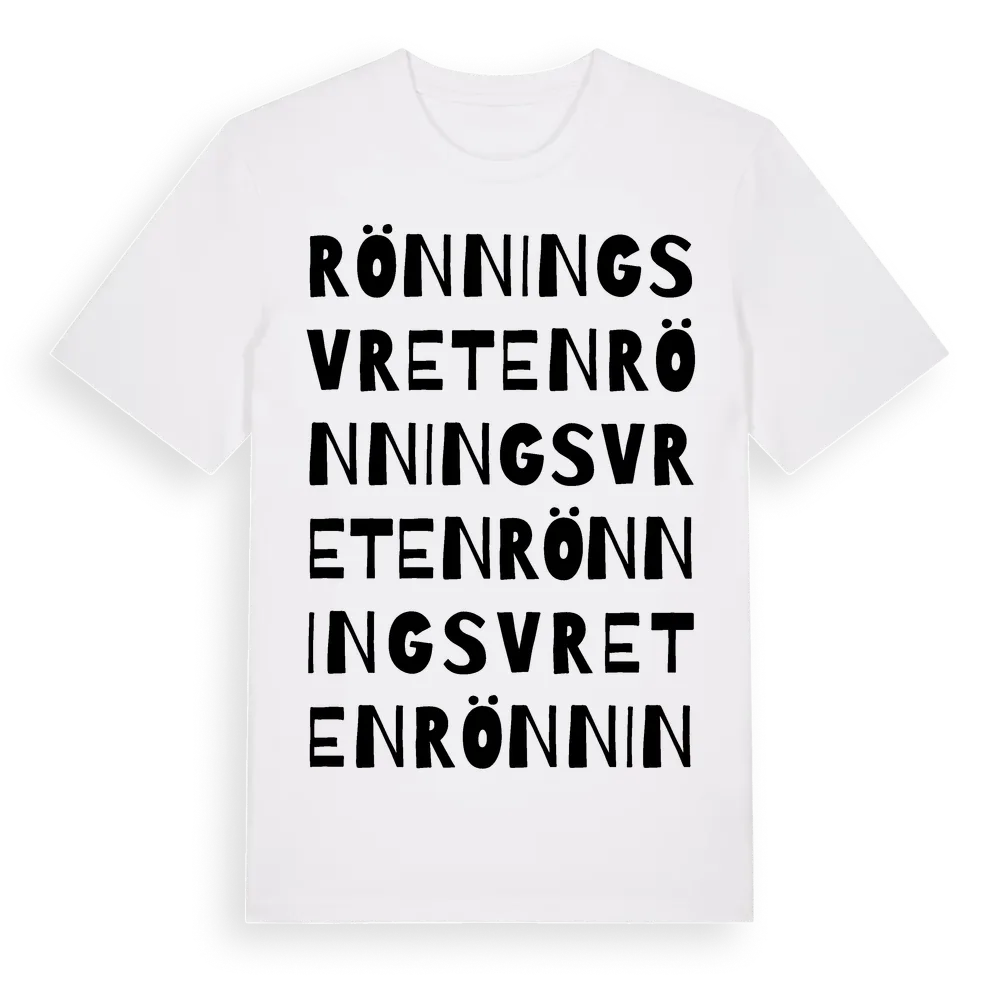 Rönningsvreten ordlek t-shirt är inspirerad av Rönningsvreten i Gävleborgs län, Sverige. Tröjan är designad för dig som har en speciell koppling till platsen – oavsett om du bor här, har rötterna här eller bara älskar Rönningsvreten.