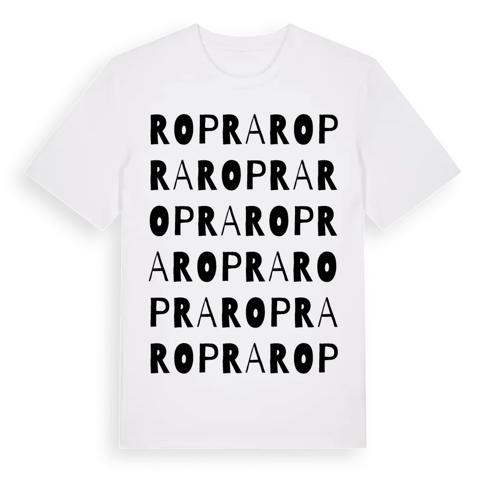 Ropra ordlek t-shirt är inspirerad av Ropra i Gävleborgs län, Sverige. Tröjan är designad för dig som har en speciell koppling till platsen – oavsett om du bor här, har rötterna här eller bara älskar Ropra.