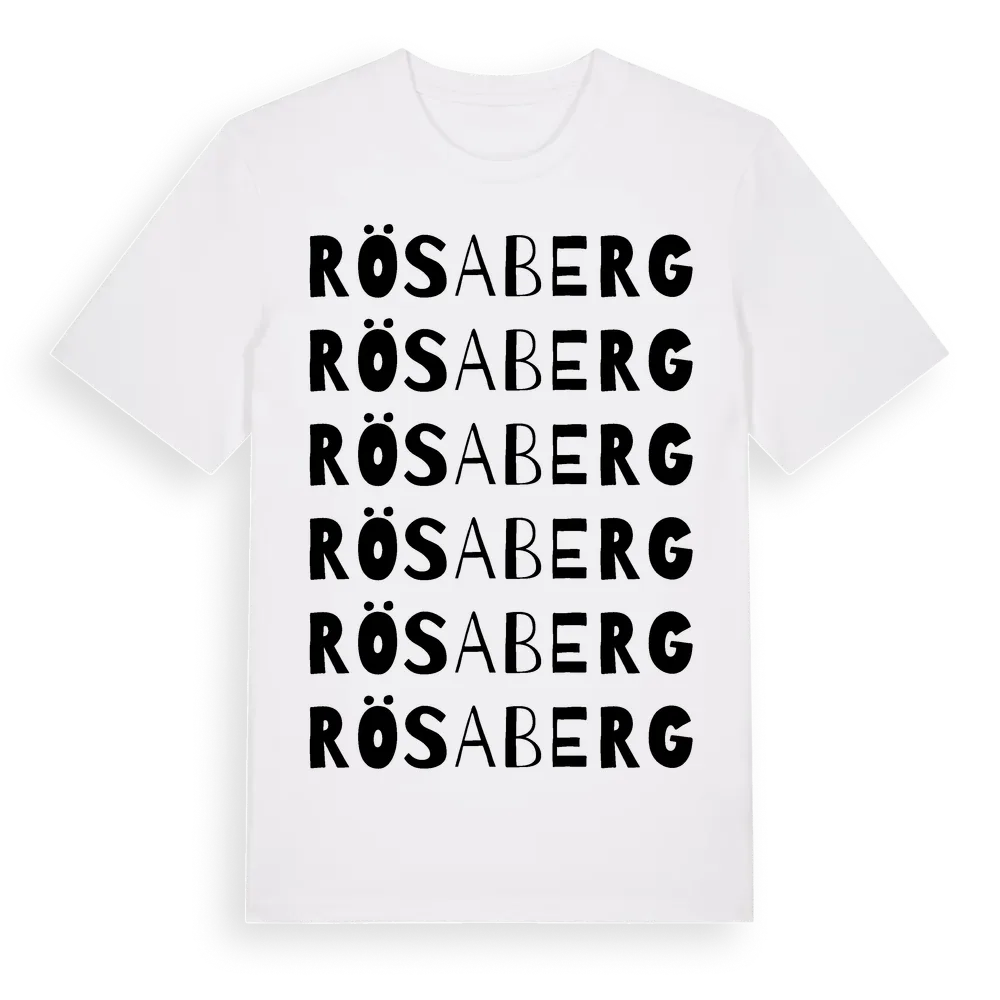 Rösaberg ordlek t-shirt är inspirerad av byn Rösaberg i Gävleborgs län, Sverige. Tröjan är designad för dig som har en speciell koppling till platsen – oavsett om du bor här, har rötterna här eller bara älskar Rösaberg.