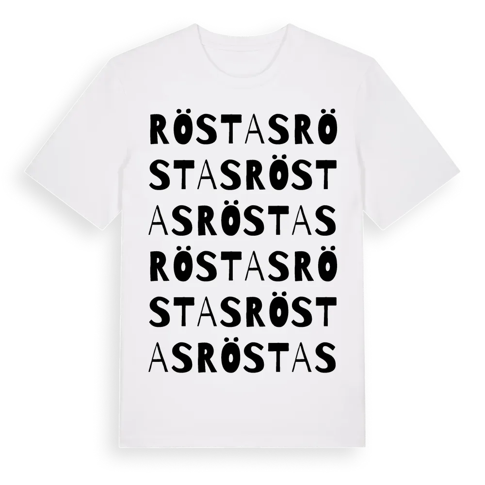 Röstas ordlek t-shirt är inspirerad av byn Röstas i Gävleborgs län, Sverige. Tröjan är designad för dig som har en speciell koppling till platsen – oavsett om du bor här, har rötterna här eller bara älskar Röstas.