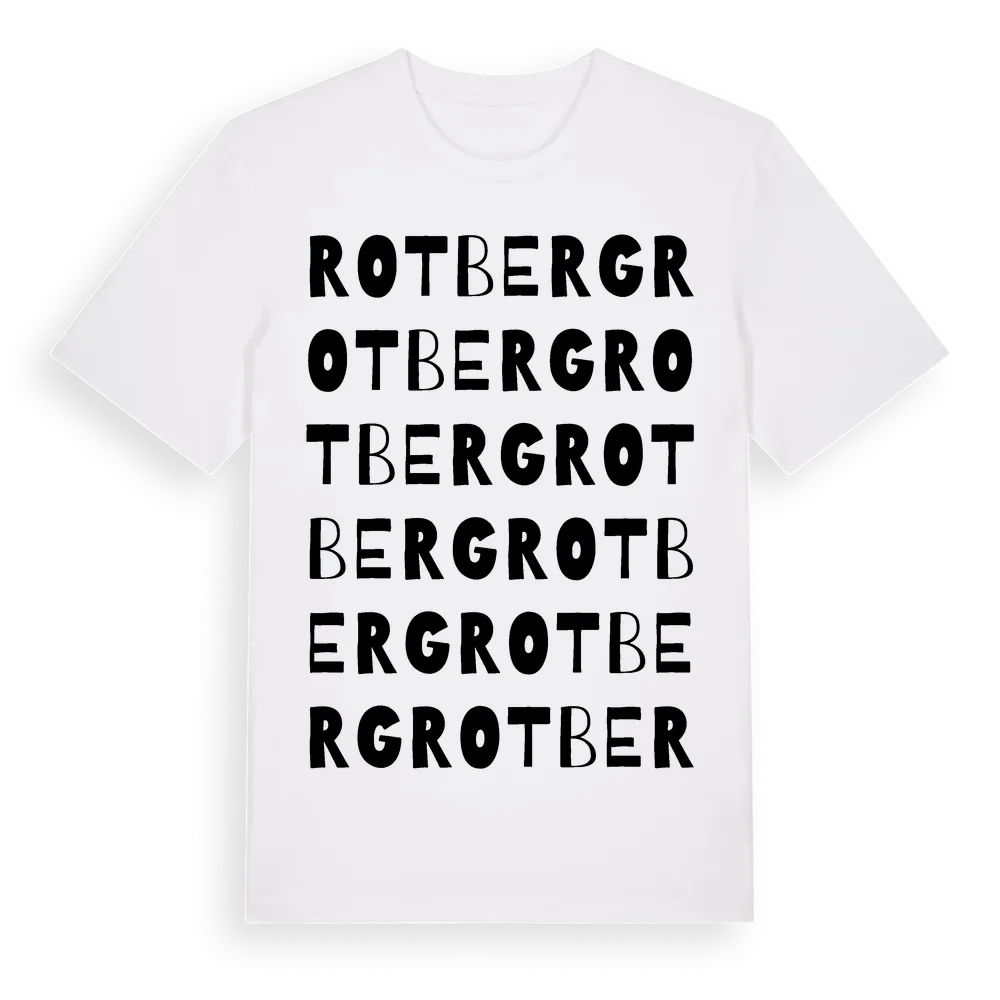 Rotberg ordlek t-shirt är inspirerad av Rotberg i Gävleborgs län, Sverige. Tröjan är designad för dig som har en speciell koppling till platsen – oavsett om du bor här, har rötterna här eller bara älskar Rotberg.