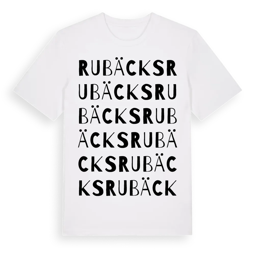 Rubäcks ordlek t-shirt är inspirerad av Rubäcks i Gävleborgs län, Sverige. Tröjan är designad för dig som har en speciell koppling till platsen – oavsett om du bor här, har rötterna här eller bara älskar Rubäcks.