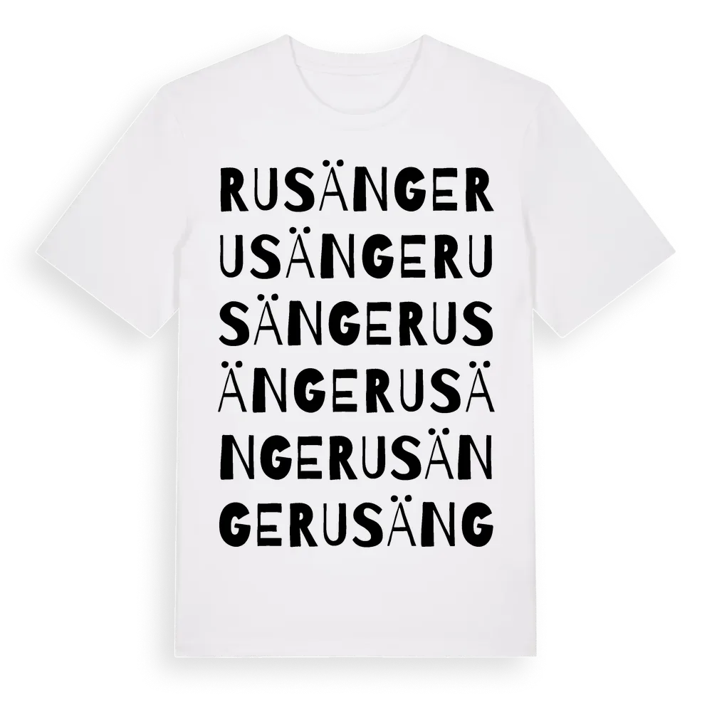 Rusänge ordlek t-shirt är inspirerad av Rusänge i Gävleborgs län, Sverige. Tröjan är designad för dig som har en speciell koppling till platsen – oavsett om du bor här, har rötterna här eller bara älskar Rusänge.