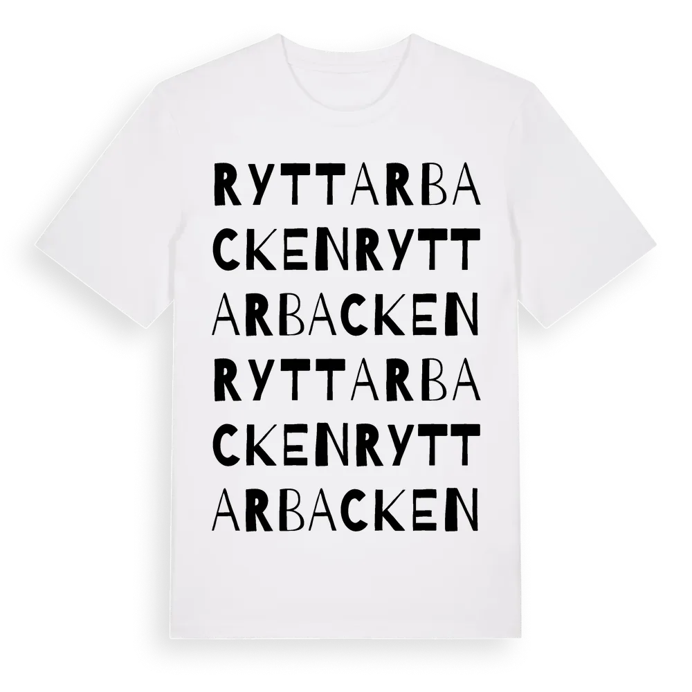 Ryttarbacken ordlek t-shirt är inspirerad av Ryttarbacken i Gävleborgs län, Sverige. Tröjan är designad för dig som har en speciell koppling till platsen – oavsett om du bor här, har rötterna här eller bara älskar Ryttarbacken.