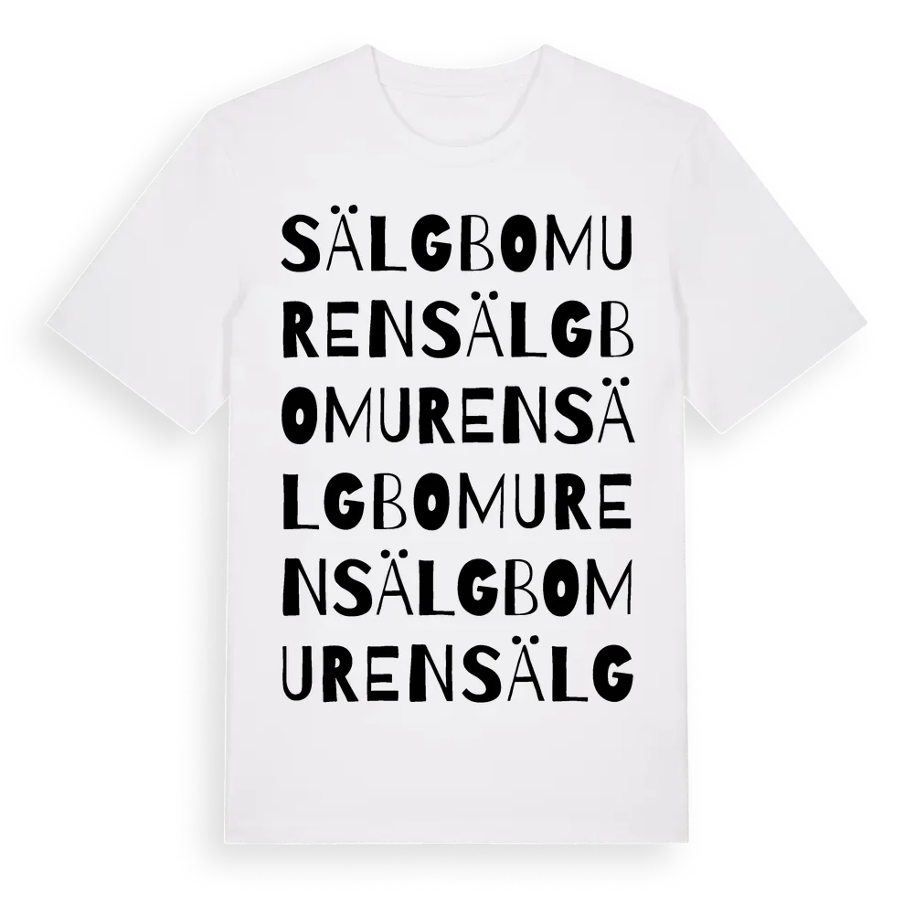 Sälgbomuren ordlek t-shirt är inspirerad av Sälgbomuren i Gävleborgs län, Sverige. Tröjan är designad för dig som har en speciell koppling till platsen – oavsett om du bor här, har rötterna här eller bara älskar Sälgbomuren.
