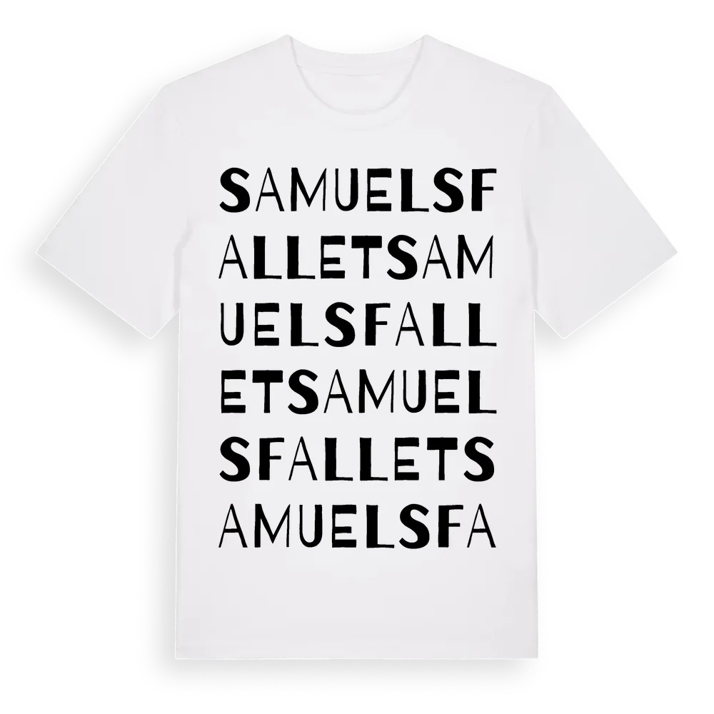 Samuelsfallet ordlek t-shirt är inspirerad av byn Samuelsfallet i Gävleborgs län, Sverige. Tröjan är designad för dig som har en speciell koppling till platsen – oavsett om du bor här, har rötterna här eller bara älskar Samuelsfallet.
