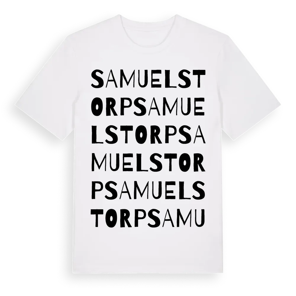 Samuelstorp ordlek t-shirt är inspirerad av Samuelstorp i Gävleborgs län, Sverige. Tröjan är designad för dig som har en speciell koppling till platsen – oavsett om du bor här, har rötterna här eller bara älskar Samuelstorp.