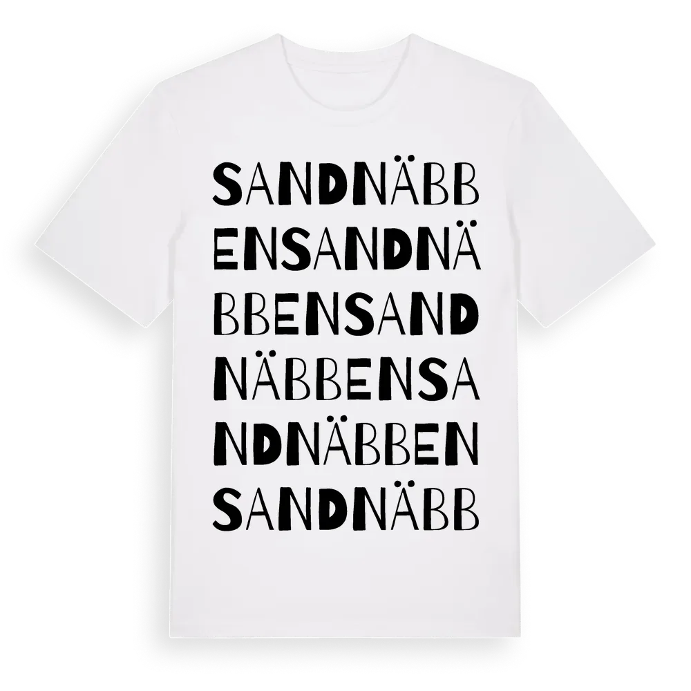 Sandnäbben ordlek t-shirt är inspirerad av Sandnäbben i Gävleborgs län, Sverige. Tröjan är designad för dig som har en speciell koppling till platsen – oavsett om du bor här, har rötterna här eller bara älskar Sandnäbben.