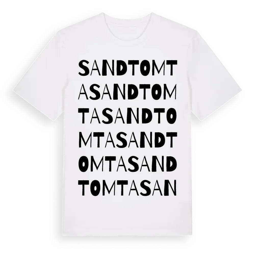 Sandtomta ordlek t-shirt är inspirerad av Sandtomta i Gävleborgs län, Sverige. Tröjan är designad för dig som har en speciell koppling till platsen – oavsett om du bor här, har rötterna här eller bara älskar Sandtomta.