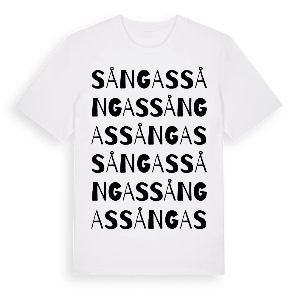 En ordlek byggd på Sångass namn. Subtilt och klurig – ett motiv som bara de som verkligen känner platsen fullt ut förstår. Premium bomull, unisex – från Sångas i Gävleborgs län.