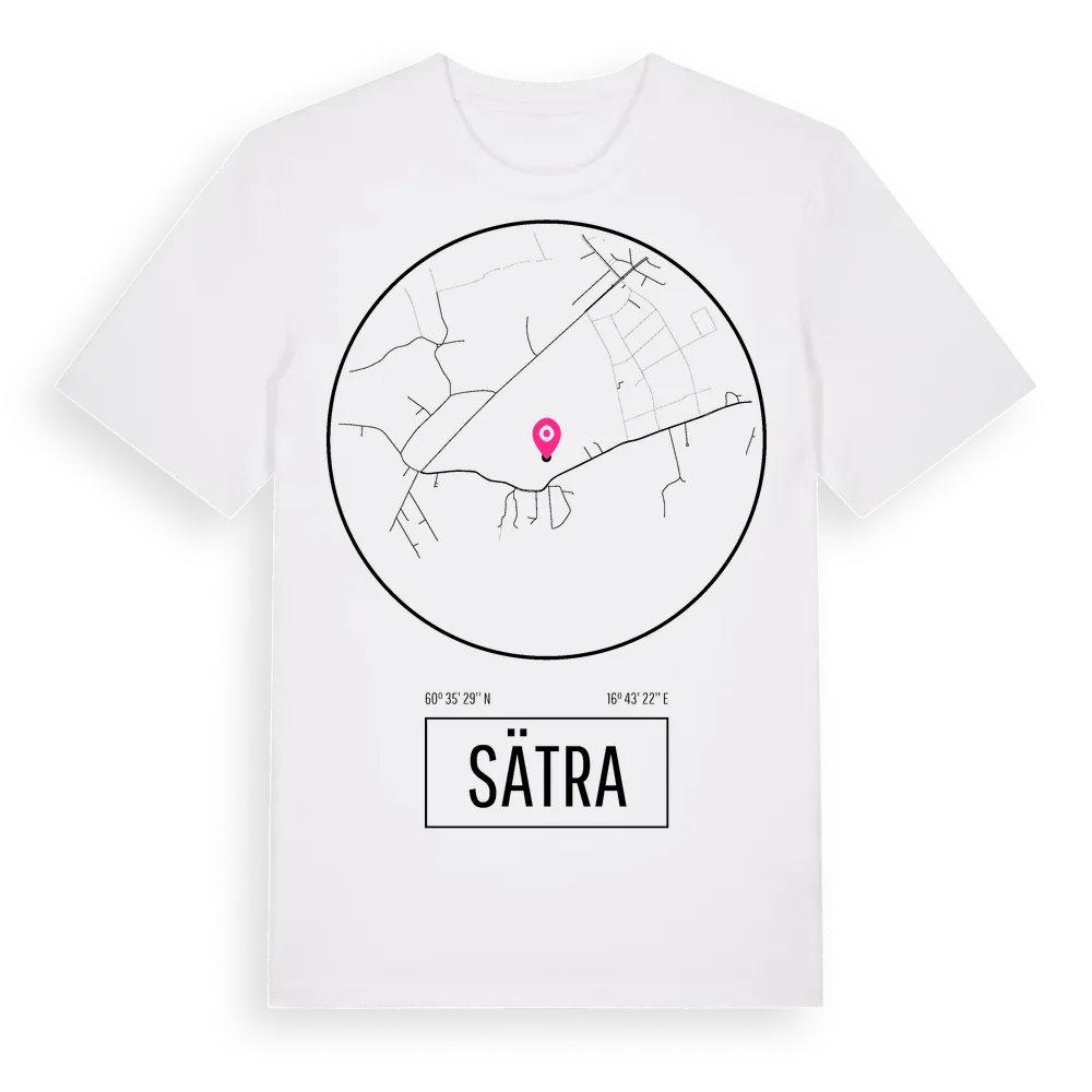 Sätra t-shirt är inspirerad av stadsdelen Sätra i Gävleborgs län, Sverige. Tröjan är designad för dig som har en speciell koppling till platsen – oavsett om du bor här, har rötterna här eller bara älskar Sätra.