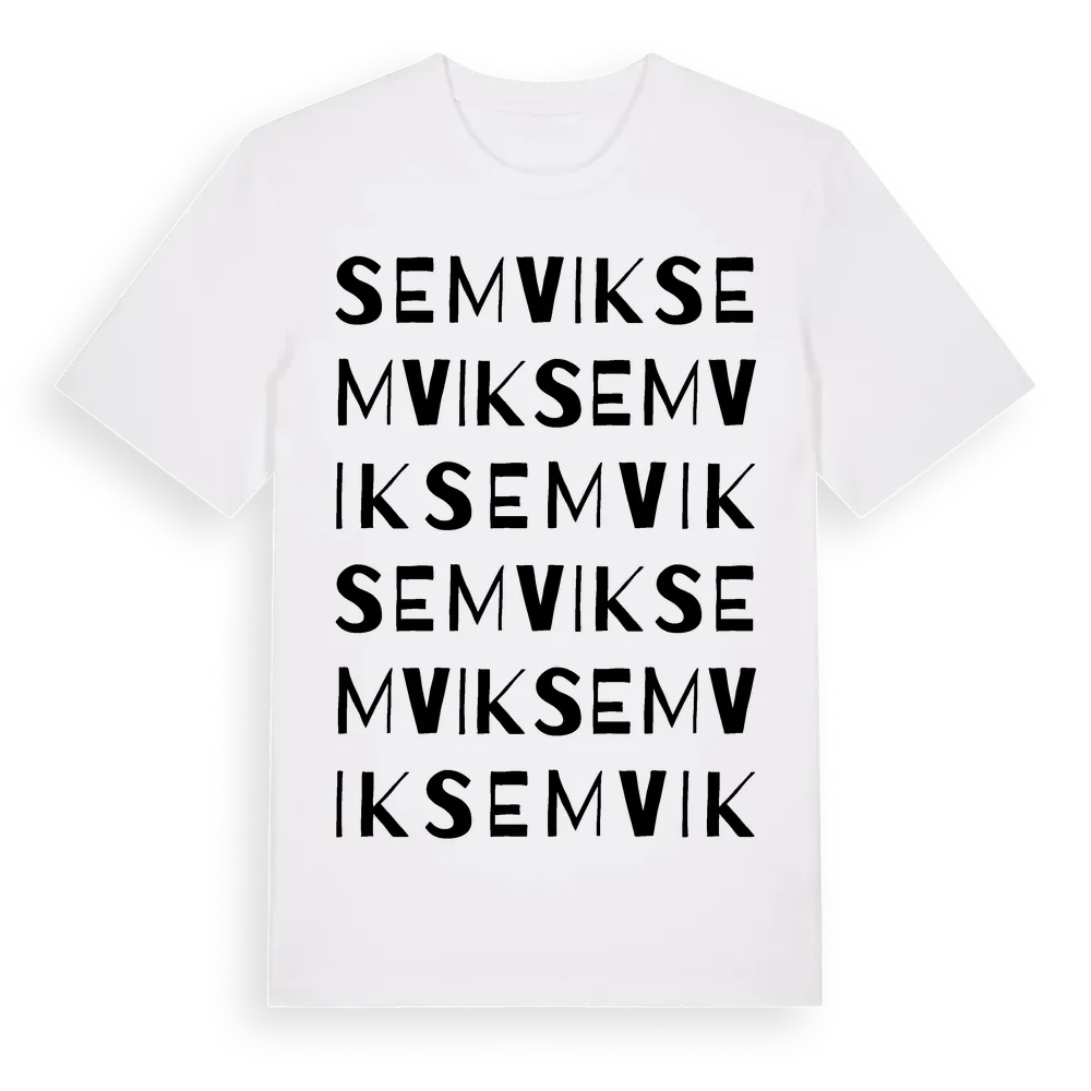 Semvik ordlek t-shirt är inspirerad av byn Semvik i Gävleborgs län, Sverige. Tröjan är designad för dig som har en speciell koppling till platsen – oavsett om du bor här, har rötterna här eller bara älskar Semvik.