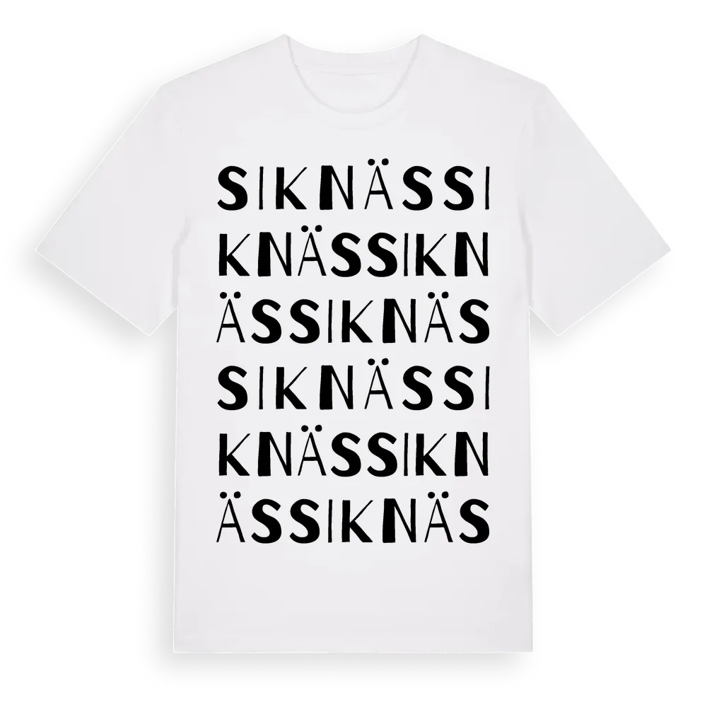 Siknäs ordlek t-shirt är inspirerad av byn Siknäs i Gävleborgs län, Sverige. Tröjan är designad för dig som har en speciell koppling till platsen – oavsett om du bor här, har rötterna här eller bara älskar Siknäs.