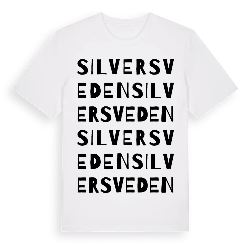 Silversveden ordlek t-shirt är inspirerad av Silversveden i Gävleborgs län, Sverige. Tröjan är designad för dig som har en speciell koppling till platsen – oavsett om du bor här, har rötterna här eller bara älskar Silversveden.
