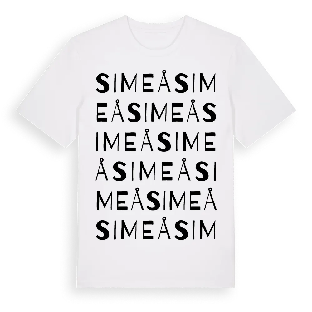 Simeå ordlek t-shirt är inspirerad av byn Simeå i Gävleborgs län, Sverige. Tröjan är designad för dig som har en speciell koppling till platsen – oavsett om du bor här, har rötterna här eller bara älskar Simeå.