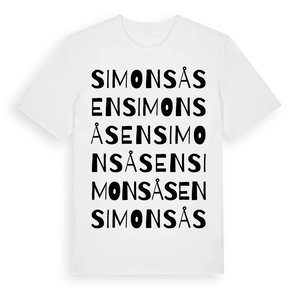 Simonsåsen ordlek t-shirt är inspirerad av Simonsåsen i Gävleborgs län, Sverige. Tröjan är designad för dig som har en speciell koppling till platsen – oavsett om du bor här, har rötterna här eller bara älskar Simonsåsen.