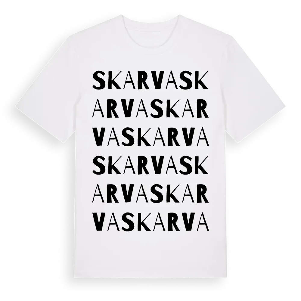 Skarva ordlek t-shirt är inspirerad av Skarva i Gävleborgs län, Sverige. Tröjan är designad för dig som har en speciell koppling till platsen – oavsett om du bor här, har rötterna här eller bara älskar Skarva.
