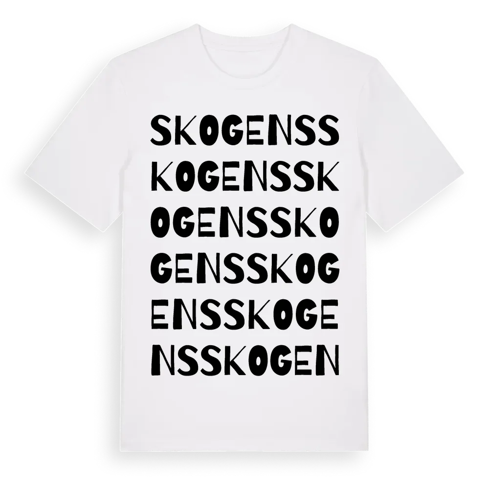 Skogens ordlek t-shirt är inspirerad av Skogens i Gävleborgs län, Sverige. Tröjan är designad för dig som har en speciell koppling till platsen – oavsett om du bor här, har rötterna här eller bara älskar Skogens.