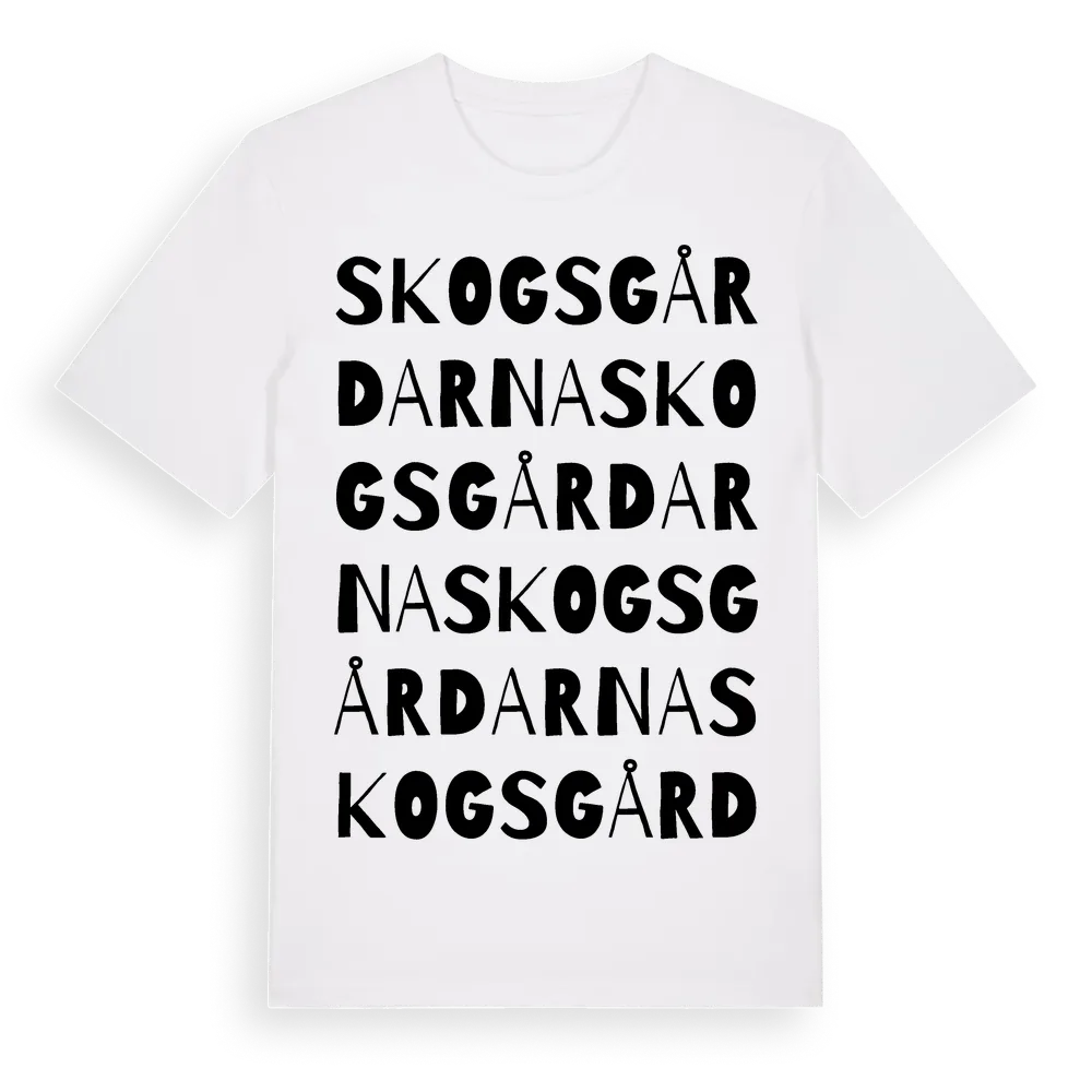 Skogsgårdarna ordlek t-shirt är inspirerad av Skogsgårdarna i Gävleborgs län, Sverige. Tröjan är designad för dig som har en speciell koppling till platsen – oavsett om du bor här, har rötterna här eller bara älskar Skogsgårdarna.
