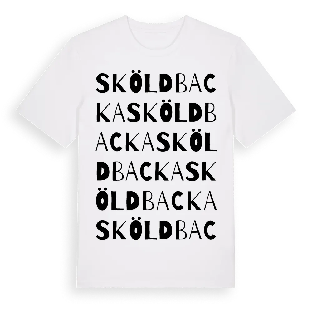 Sköldbacka ordlek t-shirt är inspirerad av Sköldbacka i Gävleborgs län, Sverige. Tröjan är designad för dig som har en speciell koppling till platsen – oavsett om du bor här, har rötterna här eller bara älskar Sköldbacka.