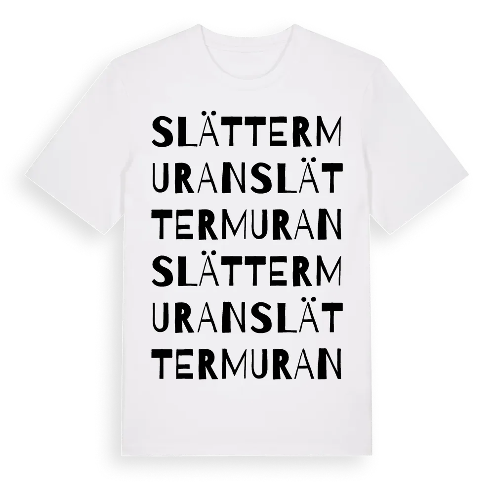 Slättermuran ordlek t-shirt är inspirerad av Slättermuran i Gävleborgs län, Sverige. Tröjan är designad för dig som har en speciell koppling till platsen – oavsett om du bor här, har rötterna här eller bara älskar Slättermuran.