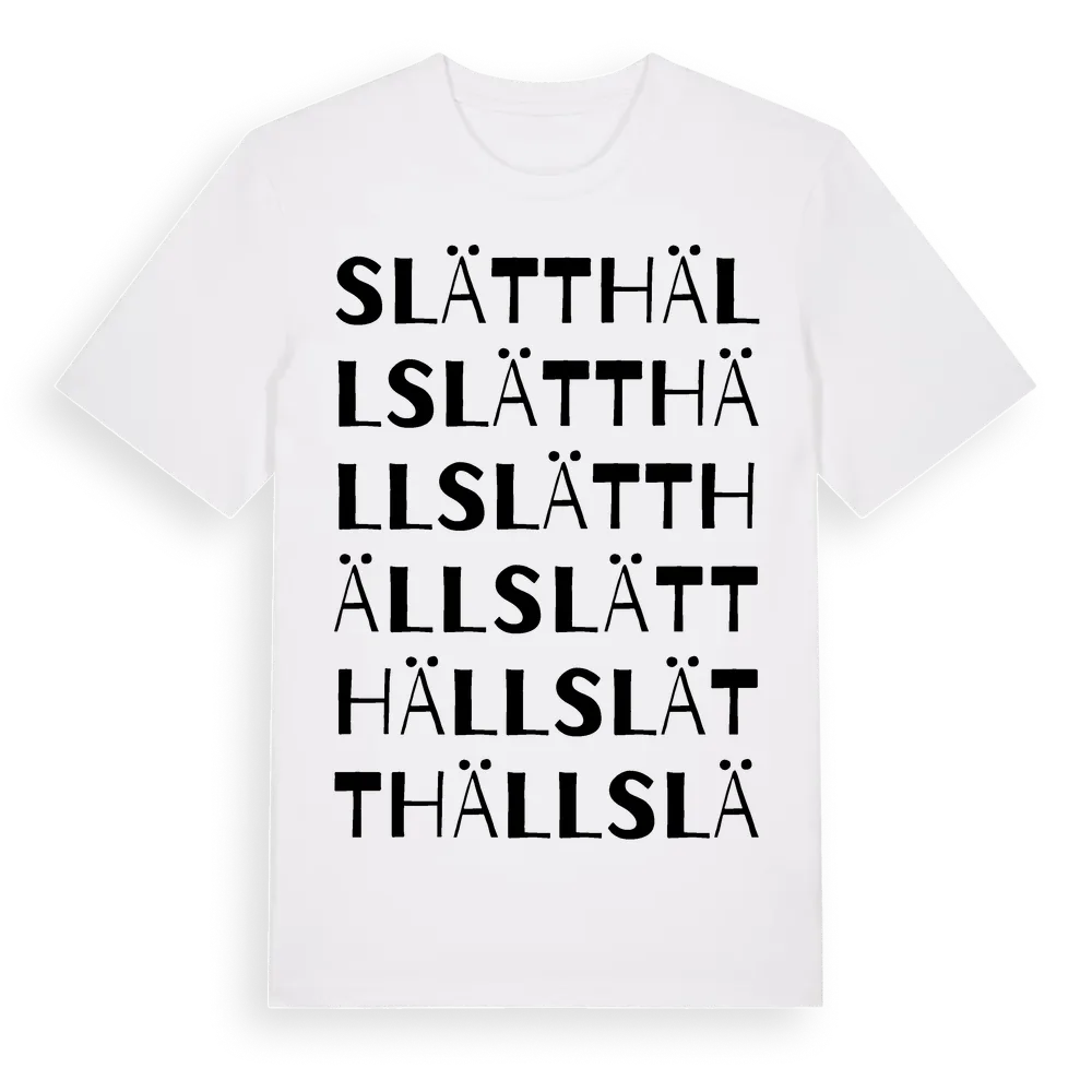 Slätthäll ordlek t-shirt är inspirerad av Slätthäll i Gävleborgs län, Sverige. Tröjan är designad för dig som har en speciell koppling till platsen – oavsett om du bor här, har rötterna här eller bara älskar Slätthäll.
