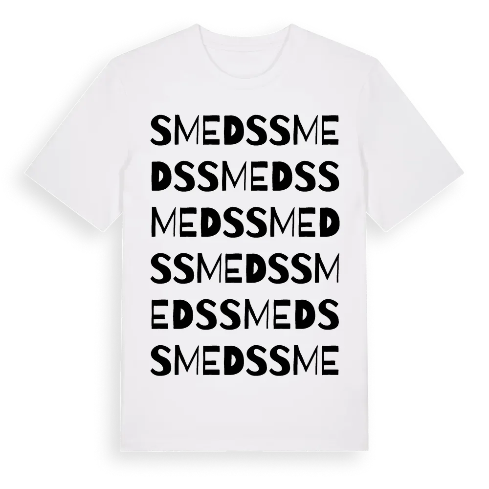 Smeds ordlek t-shirt är inspirerad av stadsdelen Smeds i Gävleborgs län, Sverige. Tröjan är designad för dig som har en speciell koppling till platsen – oavsett om du bor här, har rötterna här eller bara älskar Smeds.
