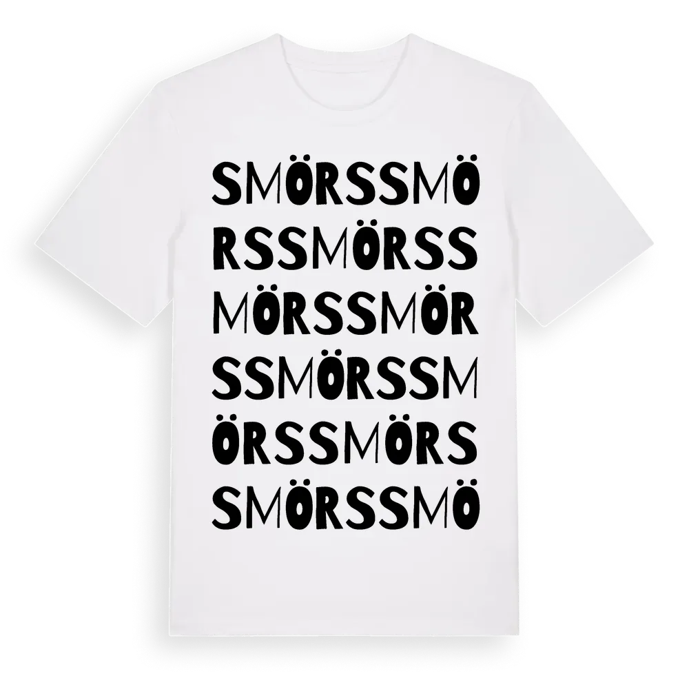 Smörs ordlek t-shirt är inspirerad av Smörs i Gävleborgs län, Sverige. Tröjan är designad för dig som har en speciell koppling till platsen – oavsett om du bor här, har rötterna här eller bara älskar Smörs.