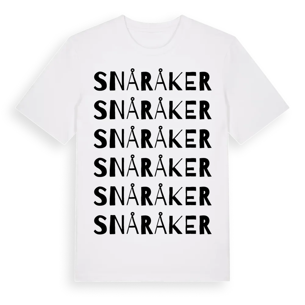 Snåråker ordlek t-shirt är inspirerad av Snåråker i Gävleborgs län, Sverige. Tröjan är designad för dig som har en speciell koppling till platsen – oavsett om du bor här, har rötterna här eller bara älskar Snåråker.