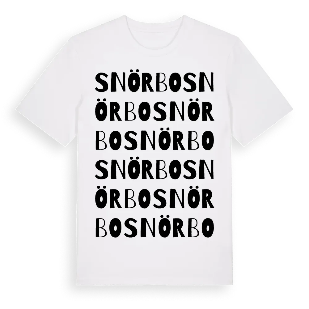 Snörbo ordlek t-shirt är inspirerad av Snörbo i Gävleborgs län, Sverige. Tröjan är designad för dig som har en speciell koppling till platsen – oavsett om du bor här, har rötterna här eller bara älskar Snörbo.