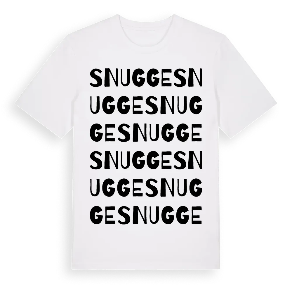Snugge ordlek t-shirt är inspirerad av Snugge i Gävleborgs län, Sverige. Tröjan är designad för dig som har en speciell koppling till platsen – oavsett om du bor här, har rötterna här eller bara älskar Snugge.