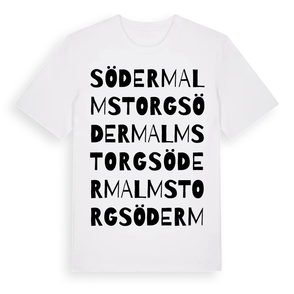 Södermalmstorg ordlek t-shirt är inspirerad av Södermalmstorg i Gävleborgs län, Sverige. Tröjan är designad för dig som har en speciell koppling till platsen – oavsett om du bor här, har rötterna här eller bara älskar Södermalmstorg.