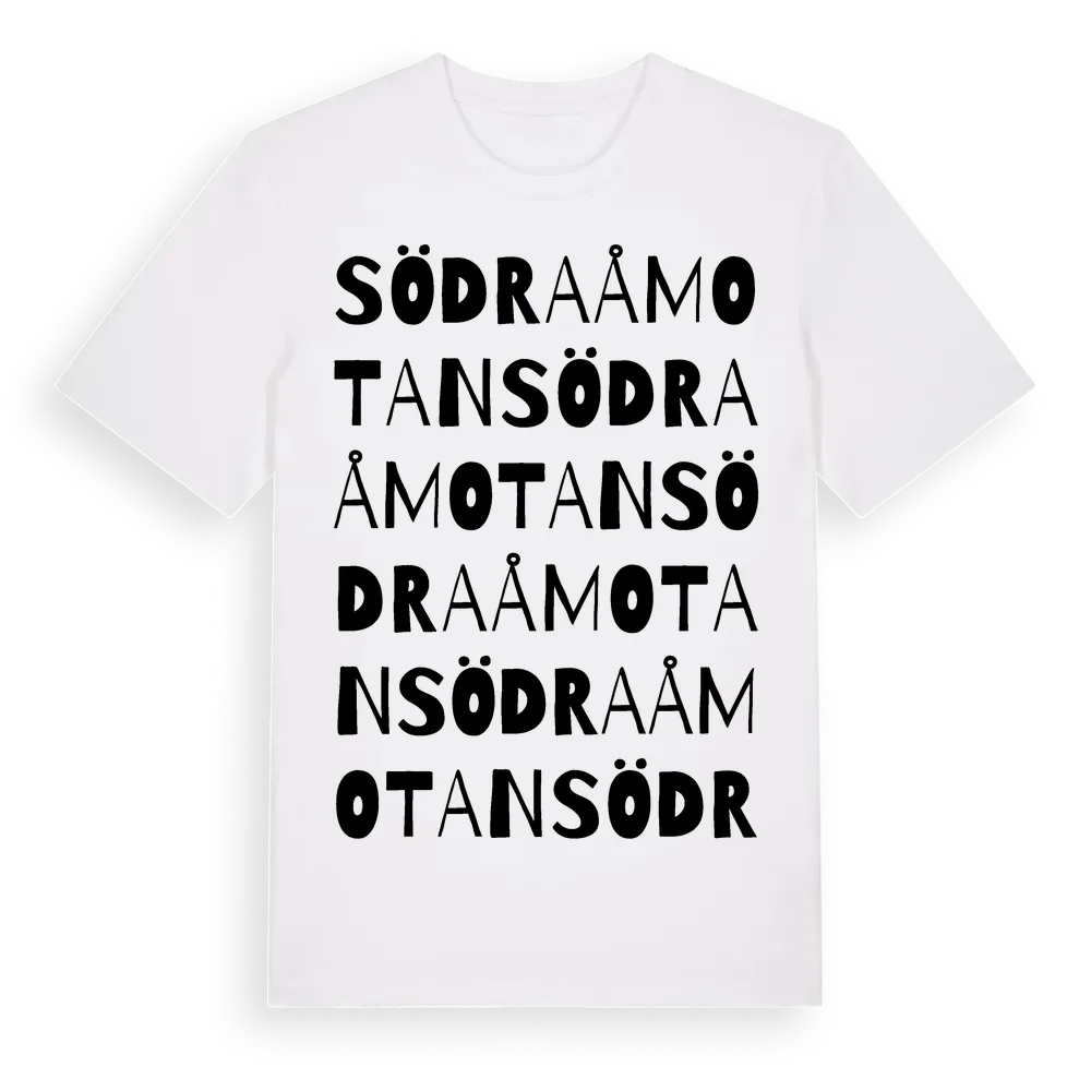 Södra Åmotan ordlek t-shirt är inspirerad av Södra Åmotan i Gävleborgs län, Sverige. Tröjan är designad för dig som har en speciell koppling till platsen – oavsett om du bor här, har rötterna här eller bara älskar Södra Åmotan.