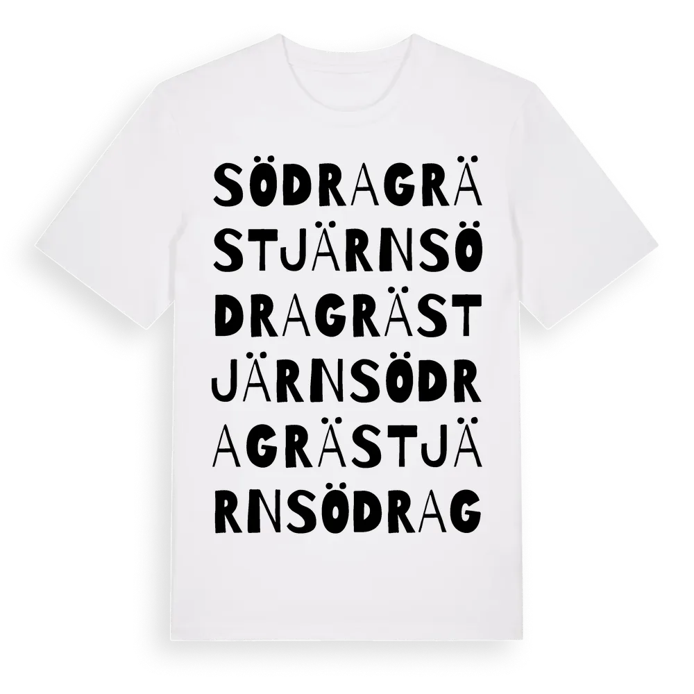 Södra Grästjärn ordlek t-shirt är inspirerad av Södra Grästjärn i Gävleborgs län, Sverige. Tröjan är designad för dig som har en speciell koppling till platsen – oavsett om du bor här, har rötterna här eller bara älskar Södra Grästjärn.
