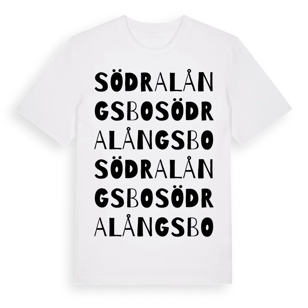Södra Långsbo ordlek t-shirt är inspirerad av Södra Långsbo i Gävleborgs län, Sverige. Tröjan är designad för dig som har en speciell koppling till platsen – oavsett om du bor här, har rötterna här eller bara älskar Södra Långsbo.