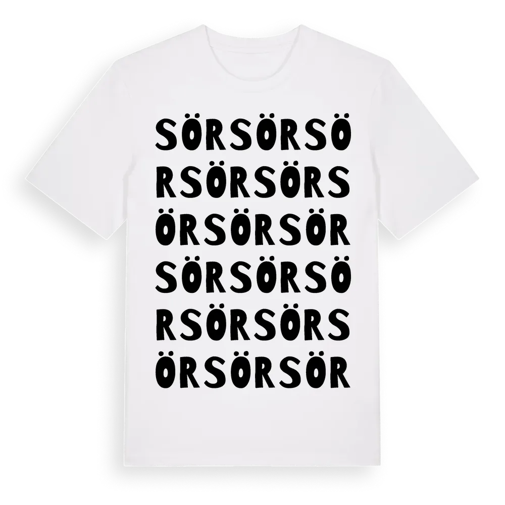 Sör ordlek t-shirt är inspirerad av Sör i Gävleborgs län, Sverige. Tröjan är designad för dig som har en speciell koppling till platsen – oavsett om du bor här, har rötterna här eller bara älskar Sör.